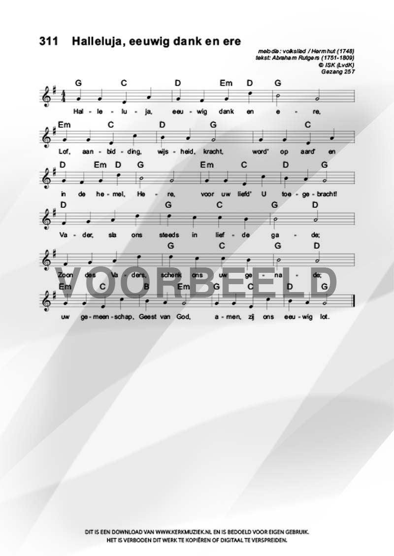 | Aanhef (eerste regel) | Halleluja, eeuwig dank en ere |