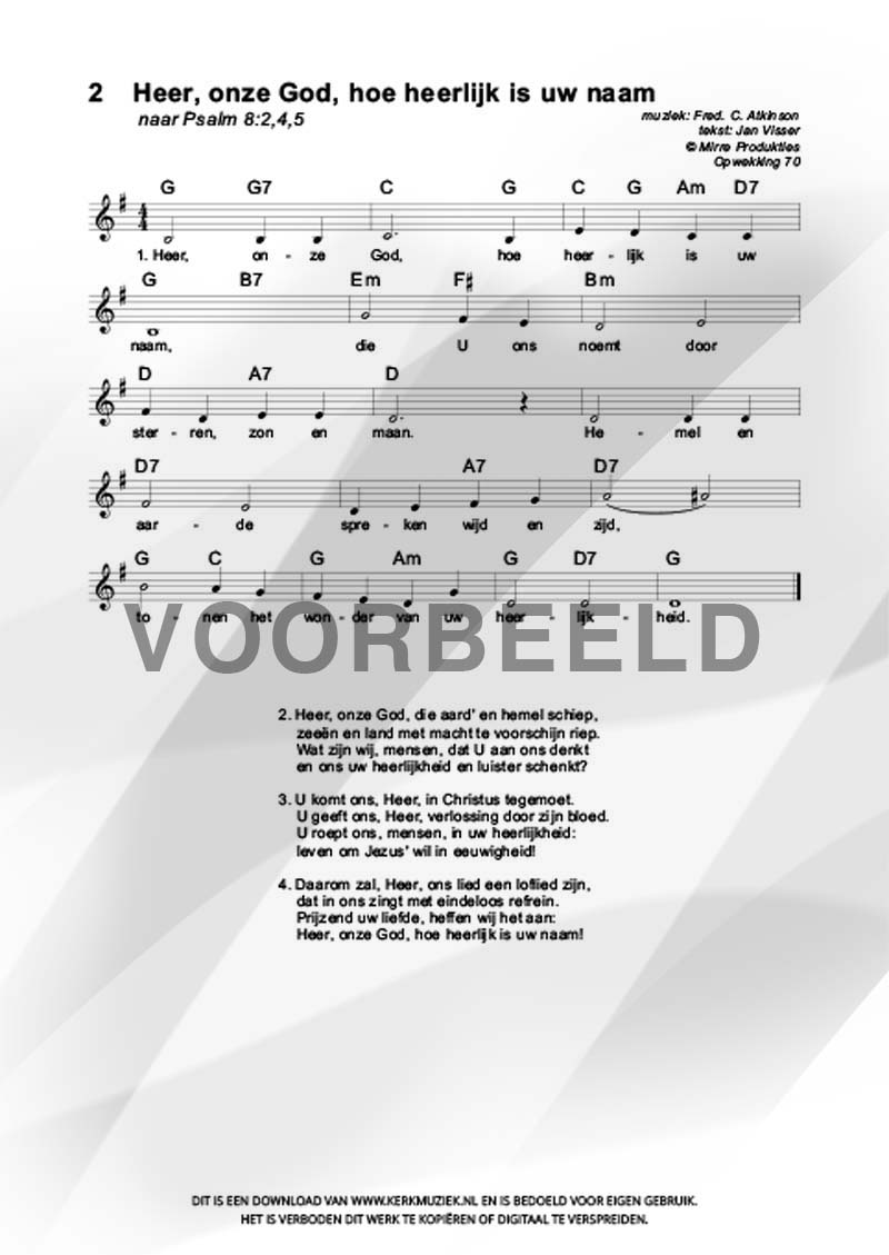 | Aanhef (eerste regel) | Heer, onze God, hoe heerlijk is uw naam |