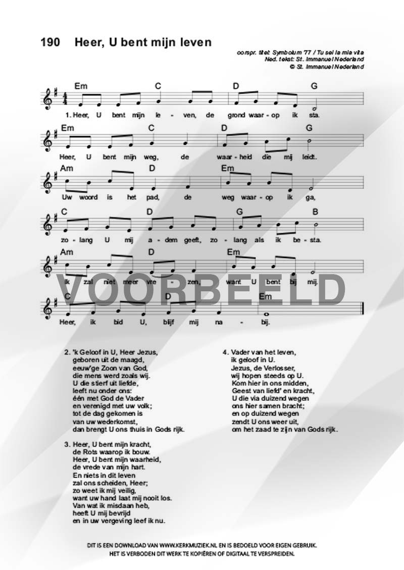 | Aanhef (eerste regel) | Heer, U bent mijn leven |