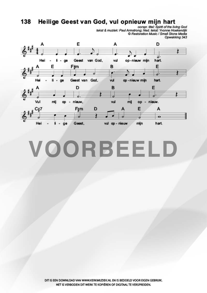 | Aanhef (eerste regel) | Heilige Geest van God, vul opnieuw mijn hart |