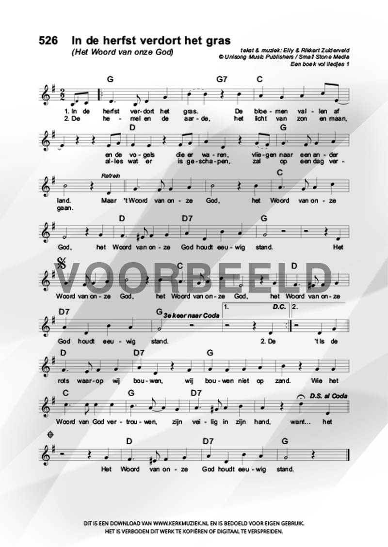 LET OP: U dient ZELF de liedbestanden te downloaden en af te drukken. Wij sturen u dus géén bladmuziek per post toe! U kunt na een geslaagde betaling direct zelf aan de slag.