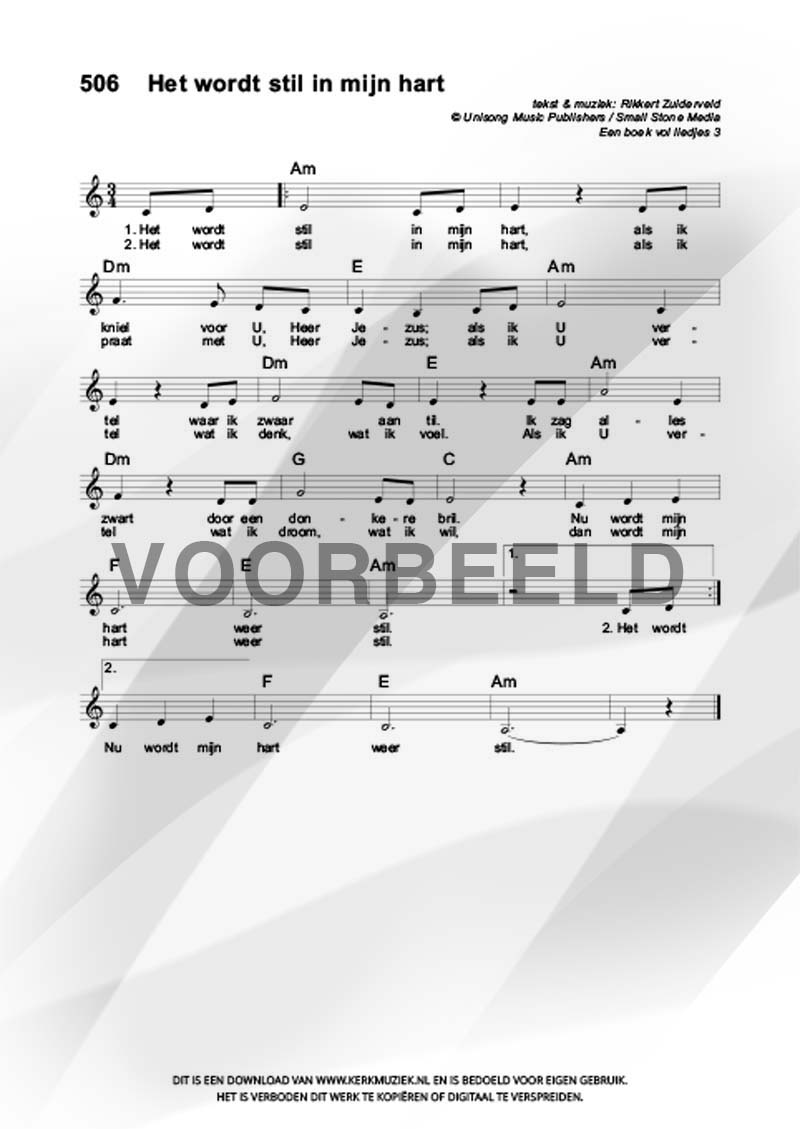 LET OP: U dient ZELF de liedbestanden te downloaden en af te drukken. Wij sturen u dus géén bladmuziek per post toe! U kunt na een geslaagde betaling direct zelf aan de slag.