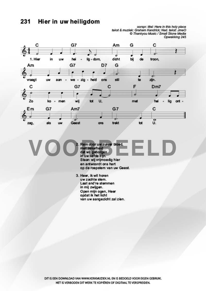 | Aanhef (eerste regel) | Hier in uw heiligdom |