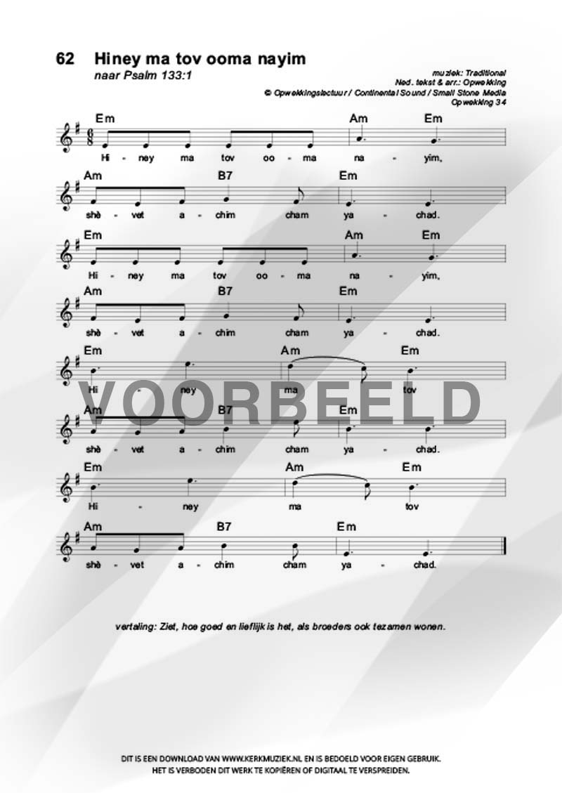 | Aanhef (eerste regel) | Hiney ma tov ooma nayim |