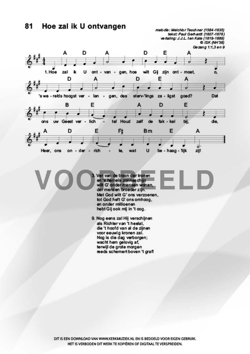 | Aanhef (eerste regel) | Hoe zal ik U ontvangen |