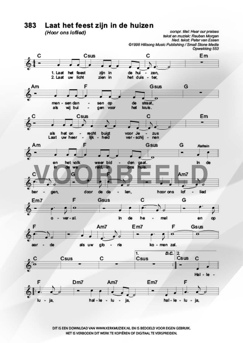 LET OP: U dient ZELF de liedbestanden te downloaden en af te drukken. Wij sturen u dus géén bladmuziek per post toe! U kunt na een geslaagde betaling direct zelf aan de slag.