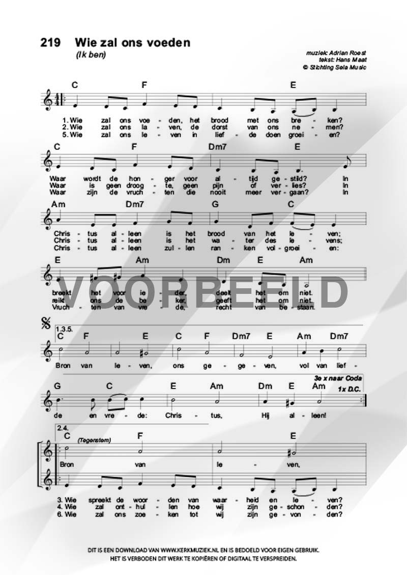KOORZETTINGEN (boven de € 10,=) mag u maximaal 30 maal kopiëren voor uw koorleden.