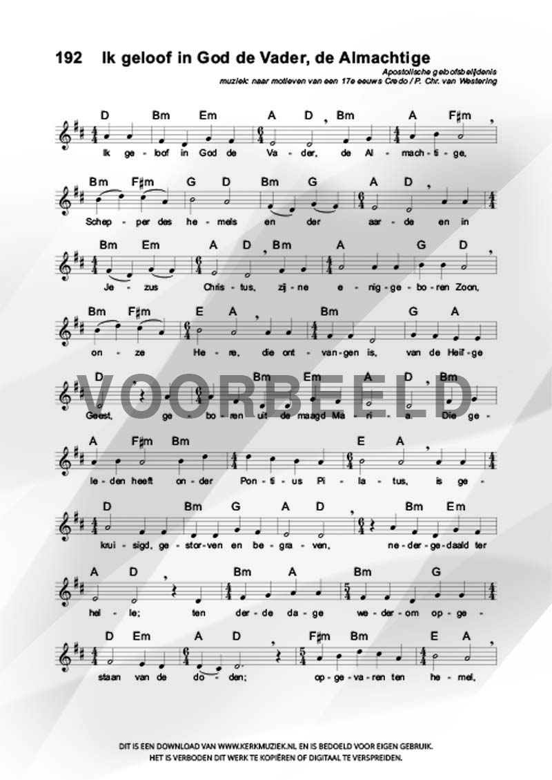 | Aanhef (eerste regel) | Ik geloof in God de Vader, de Almachtige |