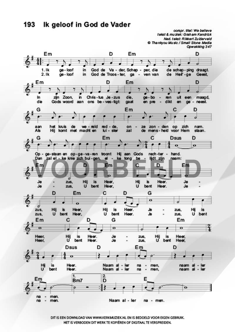 | Aanhef (eerste regel) | Ik geloof in God de Vader |