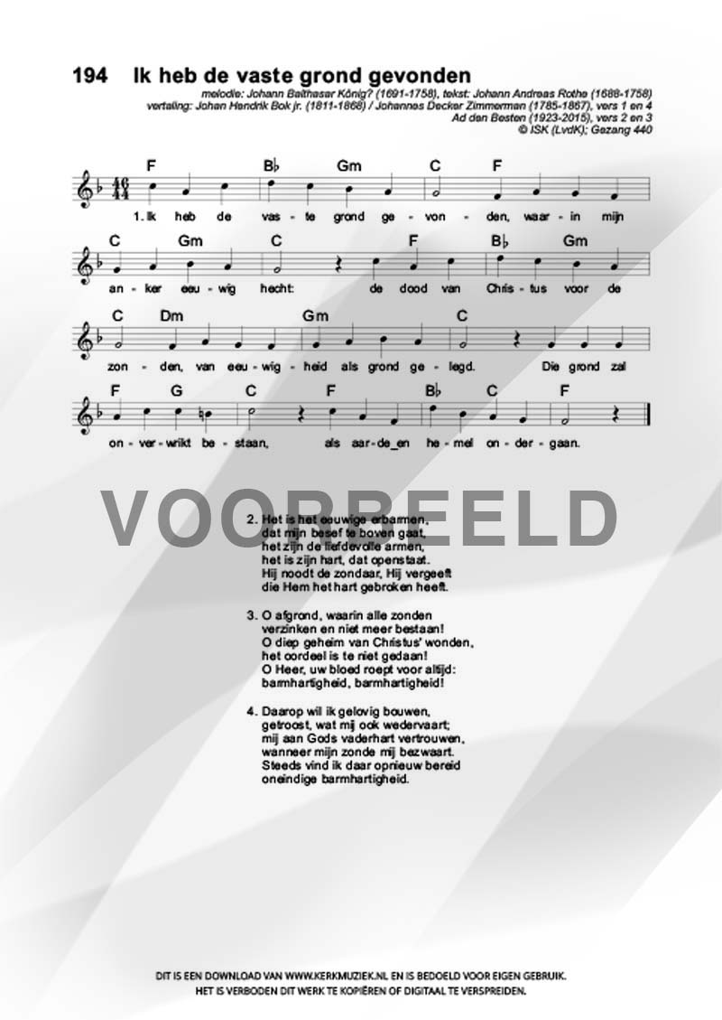 | Aanhef (eerste regel) | Ik heb de vaste grond gevonden |