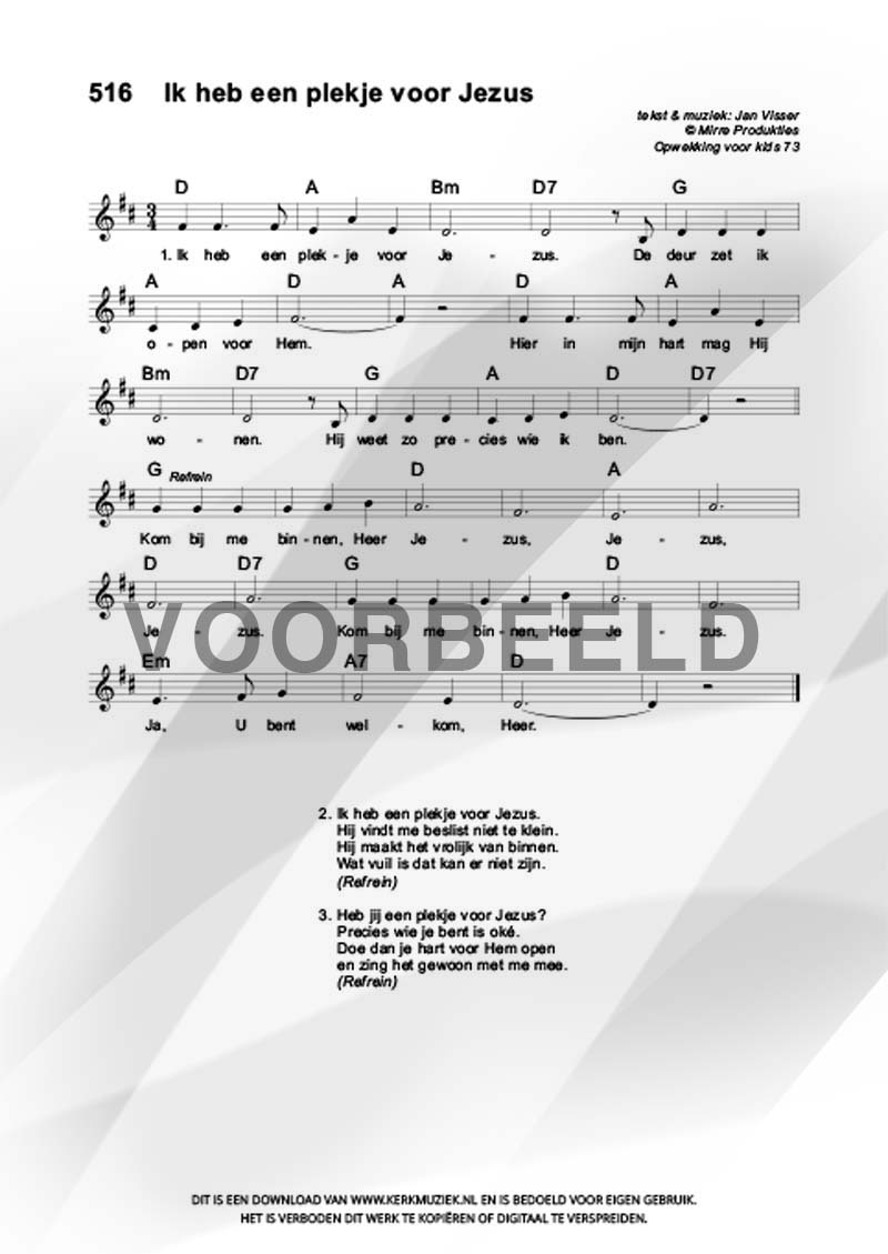 | Aanhef (eerste regel) | Ik heb een plekje voor Jezus |