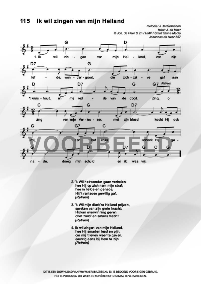 | Aanhef (eerste regel) | Ik wil zingen van mijn Heiland |