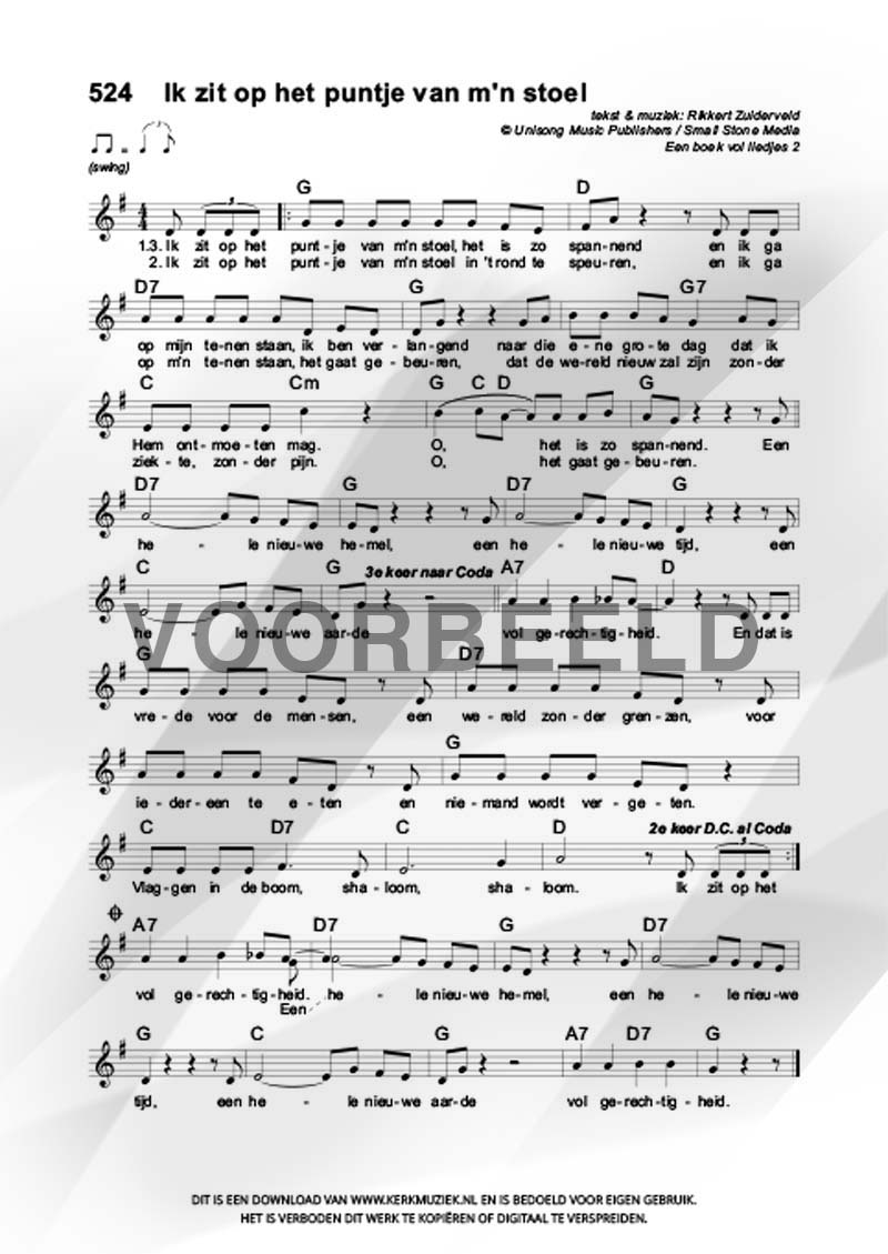 LET OP: U dient ZELF de liedbestanden te downloaden en af te drukken. Wij sturen u dus géén bladmuziek per post toe! U kunt na een geslaagde betaling direct zelf aan de slag.