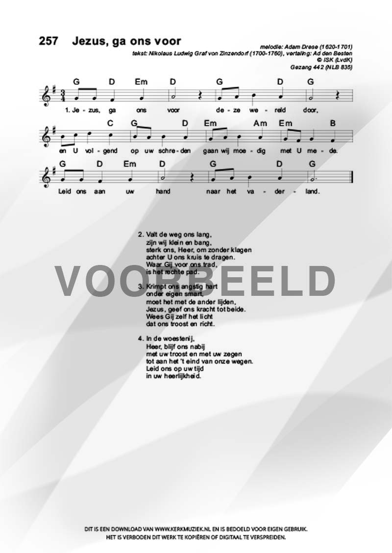 | Aanhef (eerste regel) | Jezus, ga ons voor |