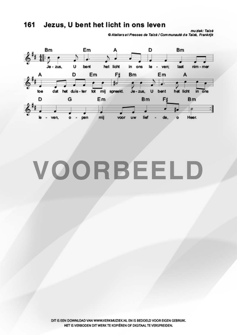 | Aanhef (eerste regel) | Jezus, U bent het licht in ons leven |