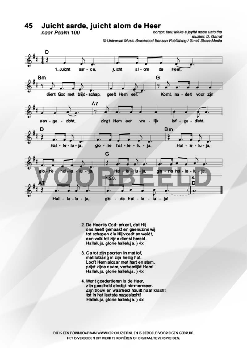 LET OP: U dient ZELF de liedbestanden te downloaden en af te drukken. Wij sturen u dus géén bladmuziek per post toe! U kunt na een geslaagde betaling direct zelf aan de slag.