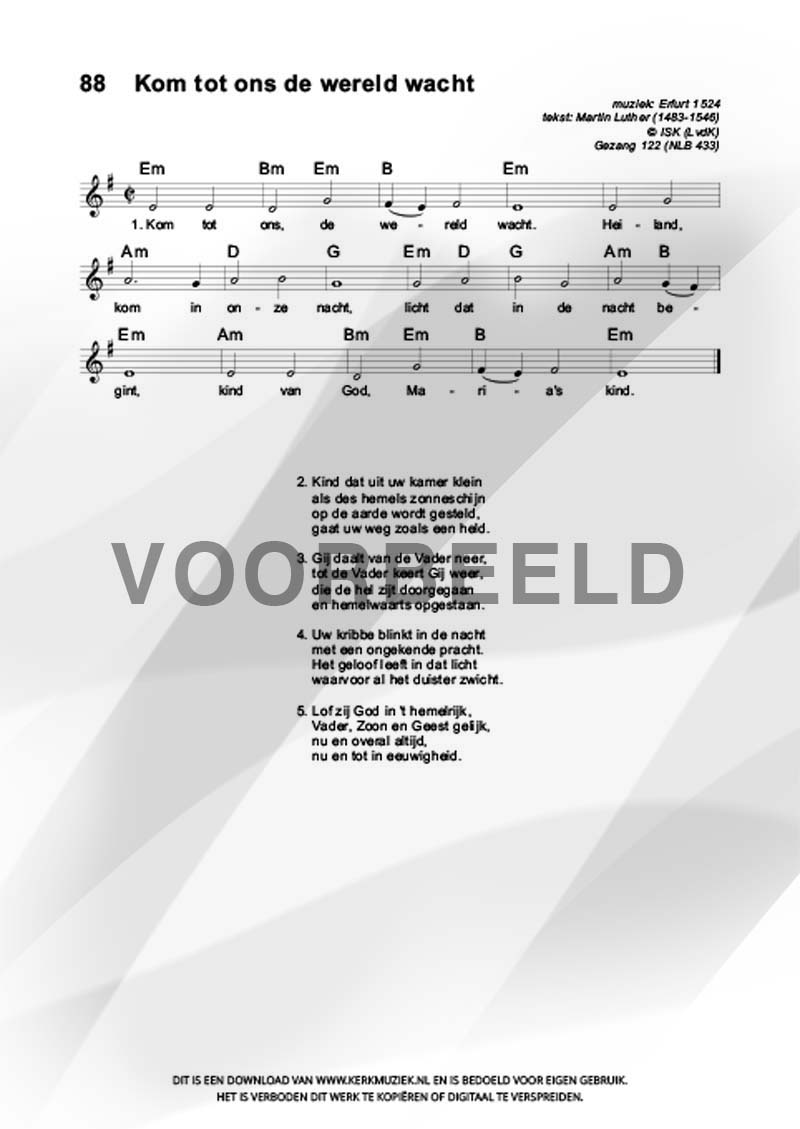 | Aanhef (eerste regel) | Kom tot ons de wereld wacht |