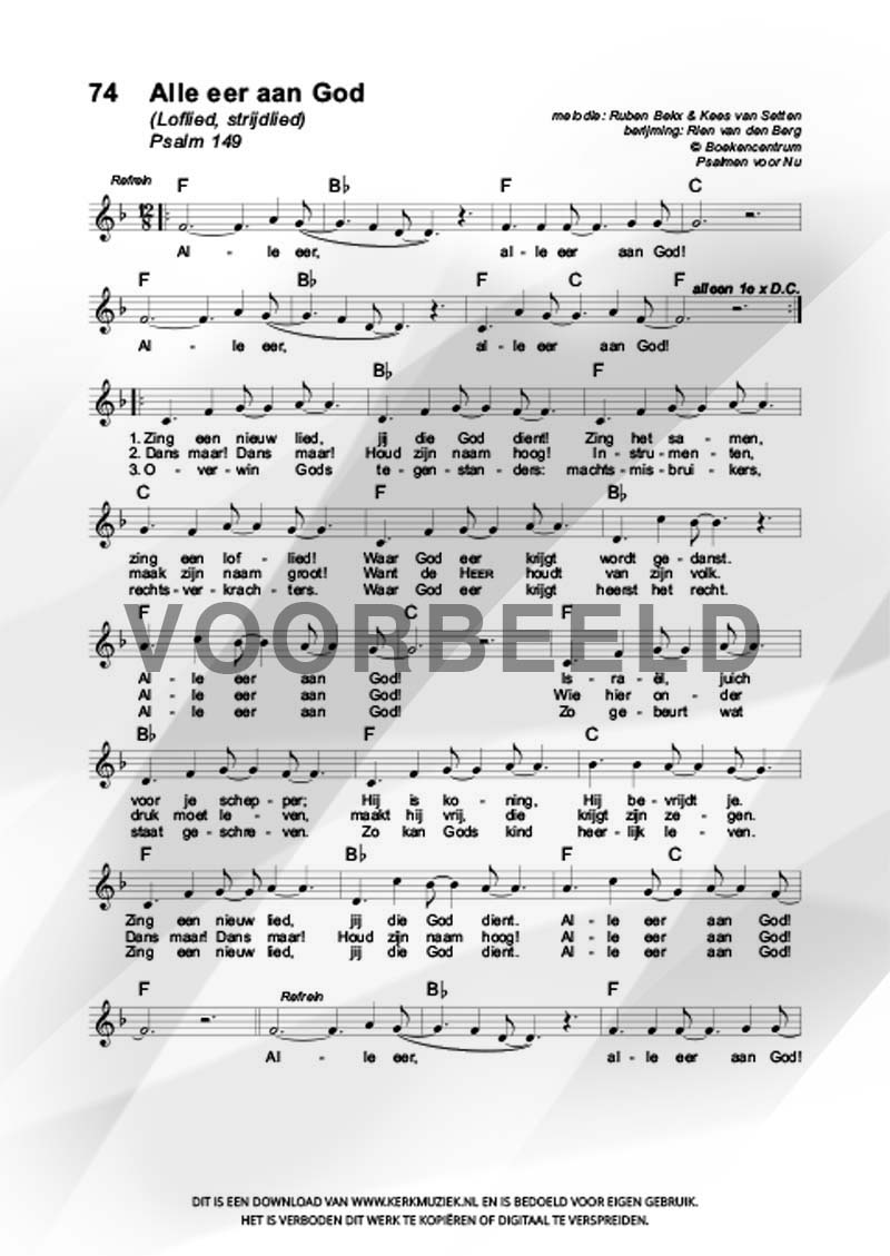 | Refrein | Alle eer aan God |