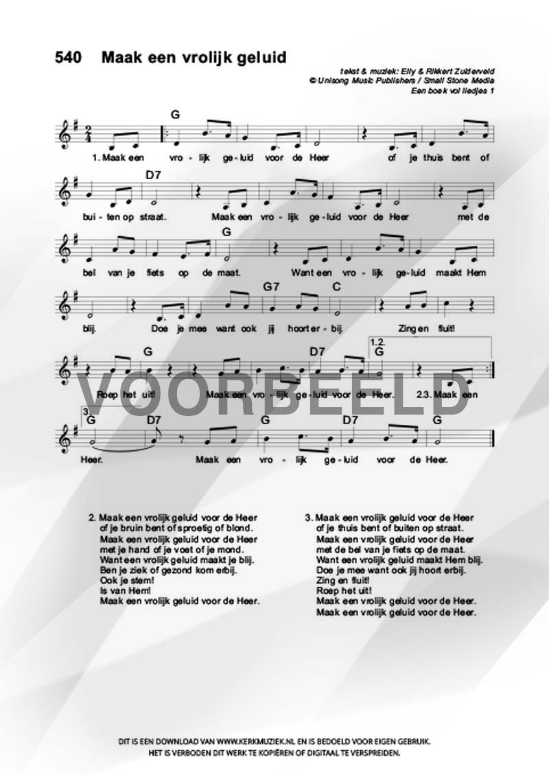 LET OP: U dient ZELF de liedbestanden te downloaden en af te drukken. Wij sturen u dus géén bladmuziek per post toe! U kunt na een geslaagde betaling direct zelf aan de slag.