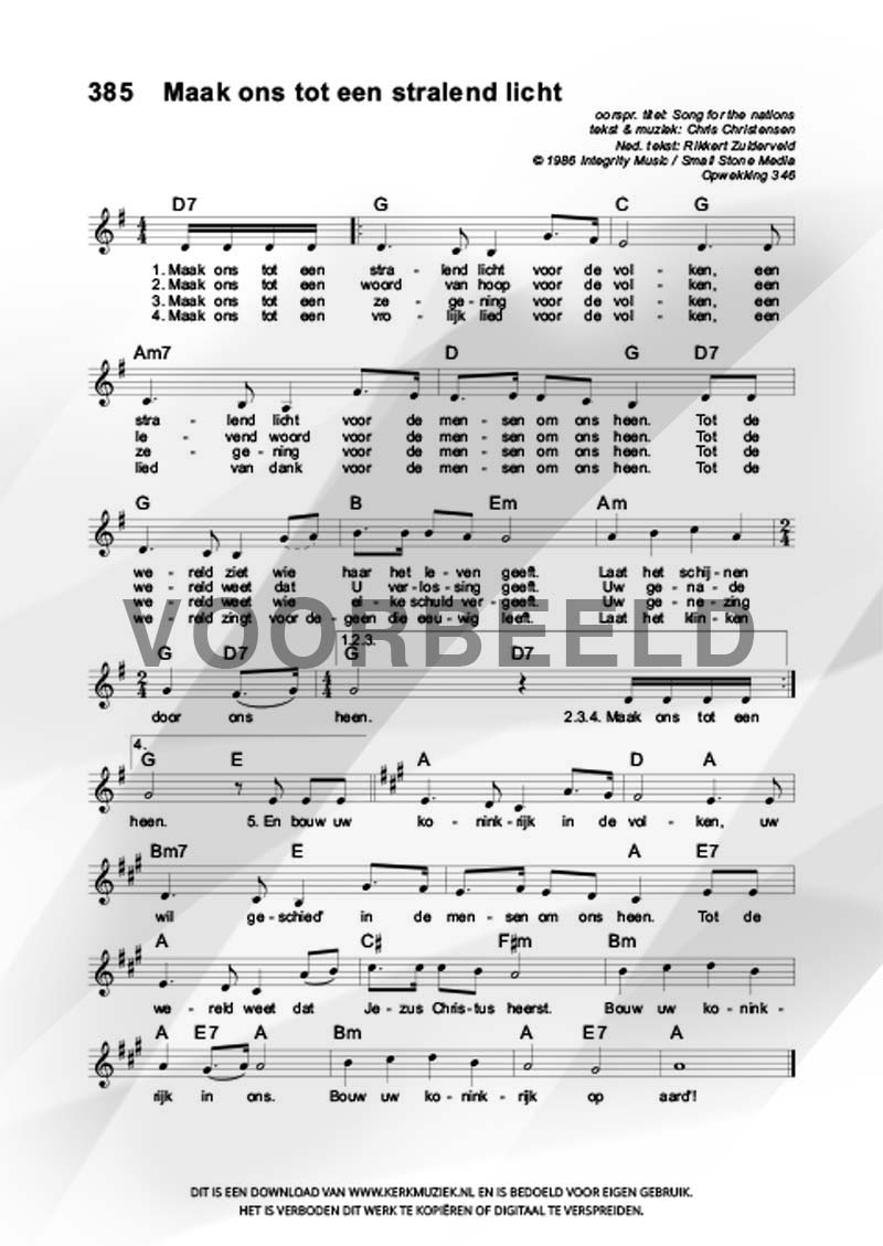 | Aanhef (eerste regel) | Maak ons tot een stralend licht |