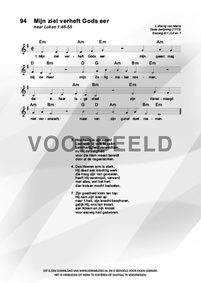 | Aanhef (eerste regel) | Mijn ziel verheft Gods eer |