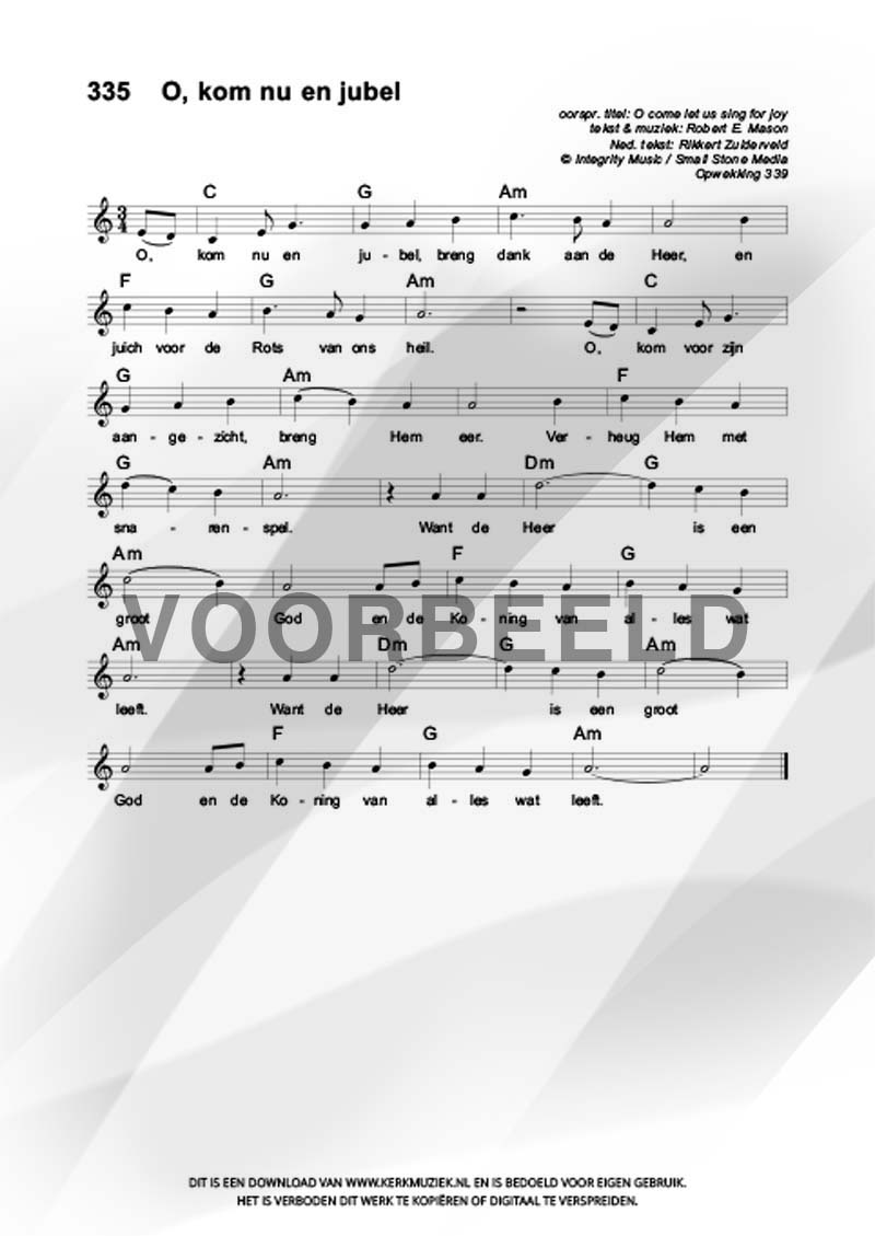 | Aanhef (eerste regel) | O, kom nu en jubel |