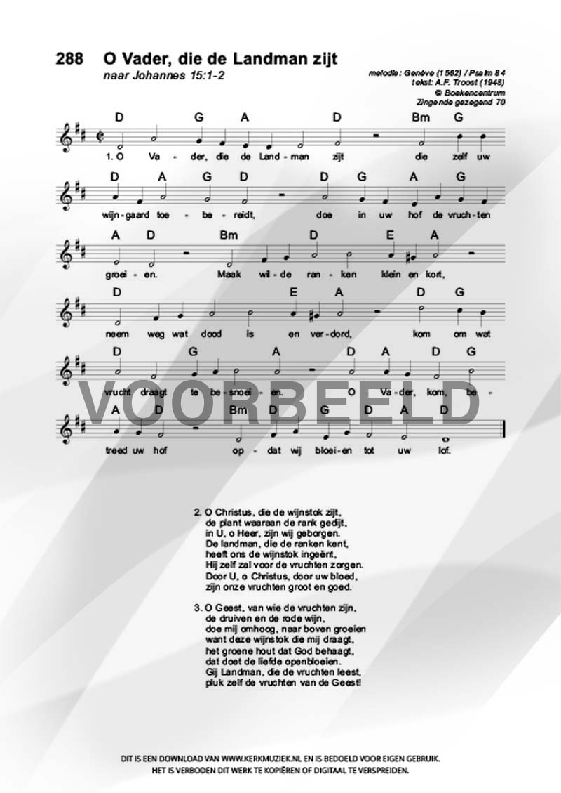 | Aanhef (eerste regel) | O Vader, die de Landman zijt |