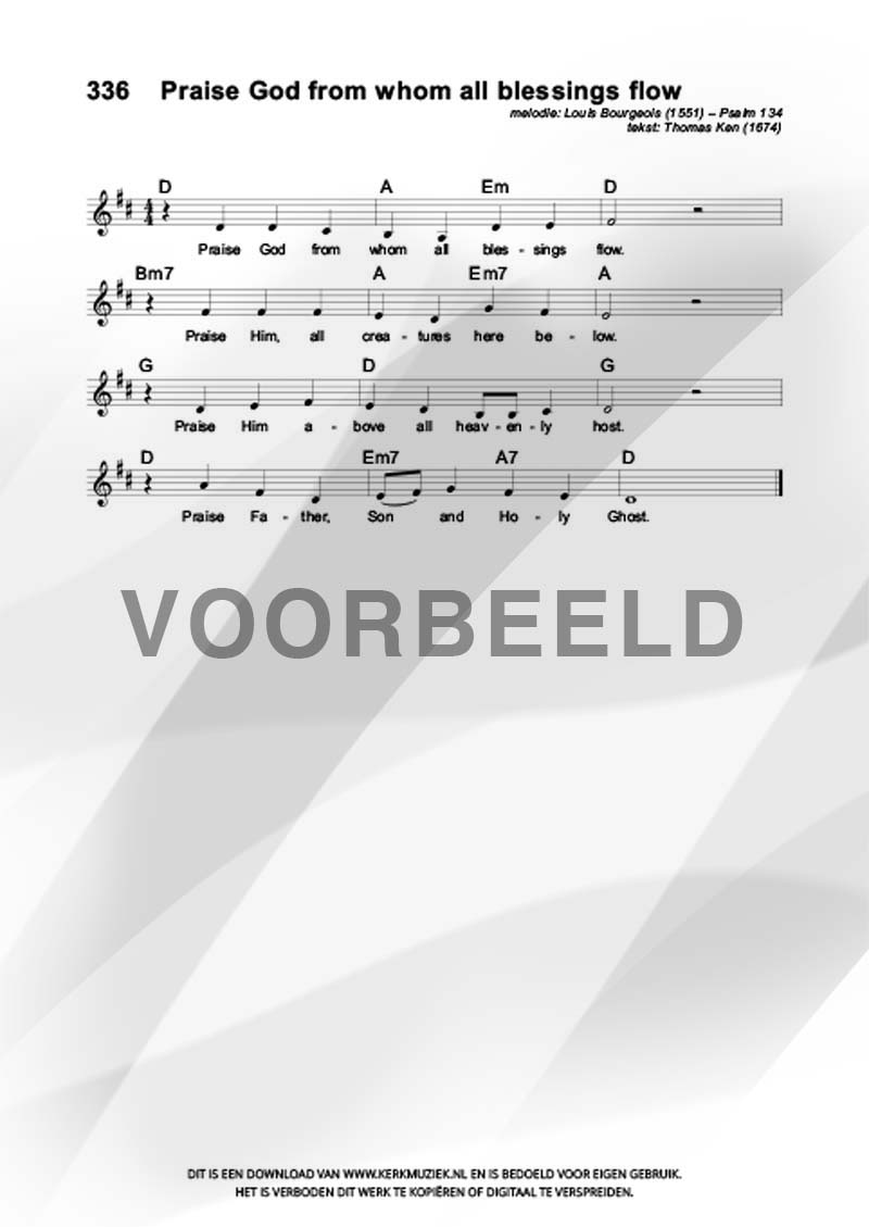 | Aanhef (eerste regel) | Praise God from whom all blessings flow |