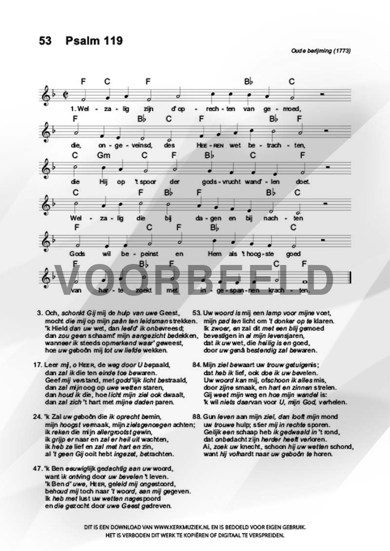 | Aanhef (eerste regel) | Welzalig zijn d'oprechten van gemoed |