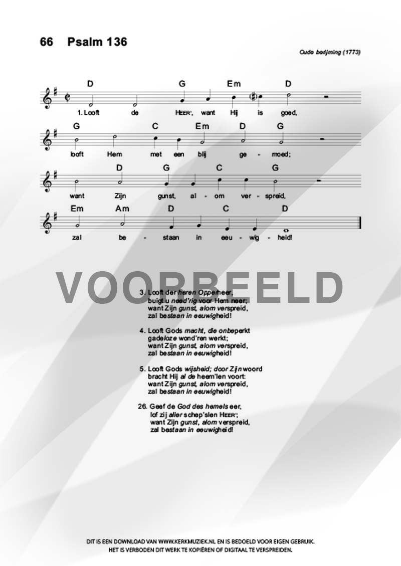 | Aanhef (eerste regel) | Looft de |Heer, want Hij is goed |