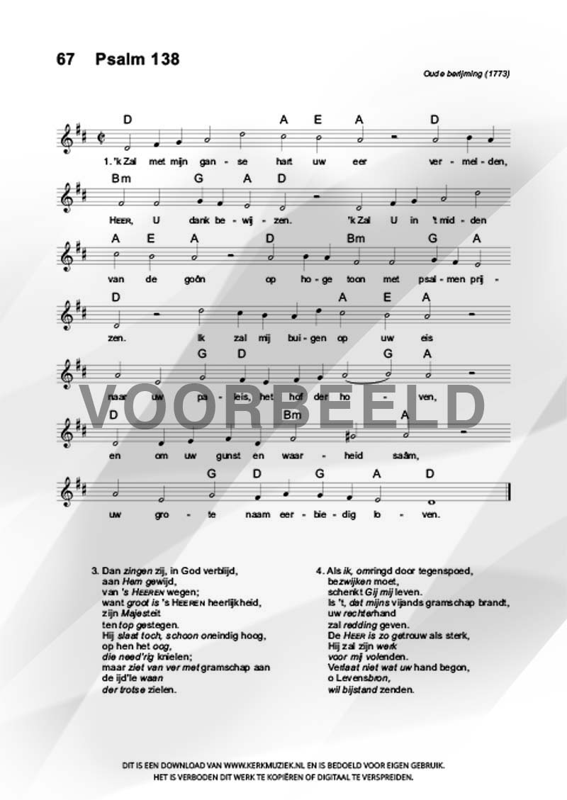 | Aanhef (eerste regel) | k Zal met mijn ganse hart uw eer vermelden |