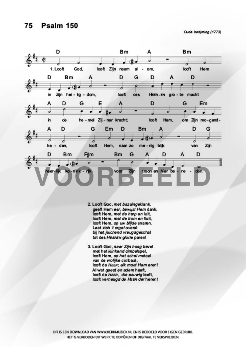| Aanhef (eerste regel) | Looft God, looft zijn naam alom |