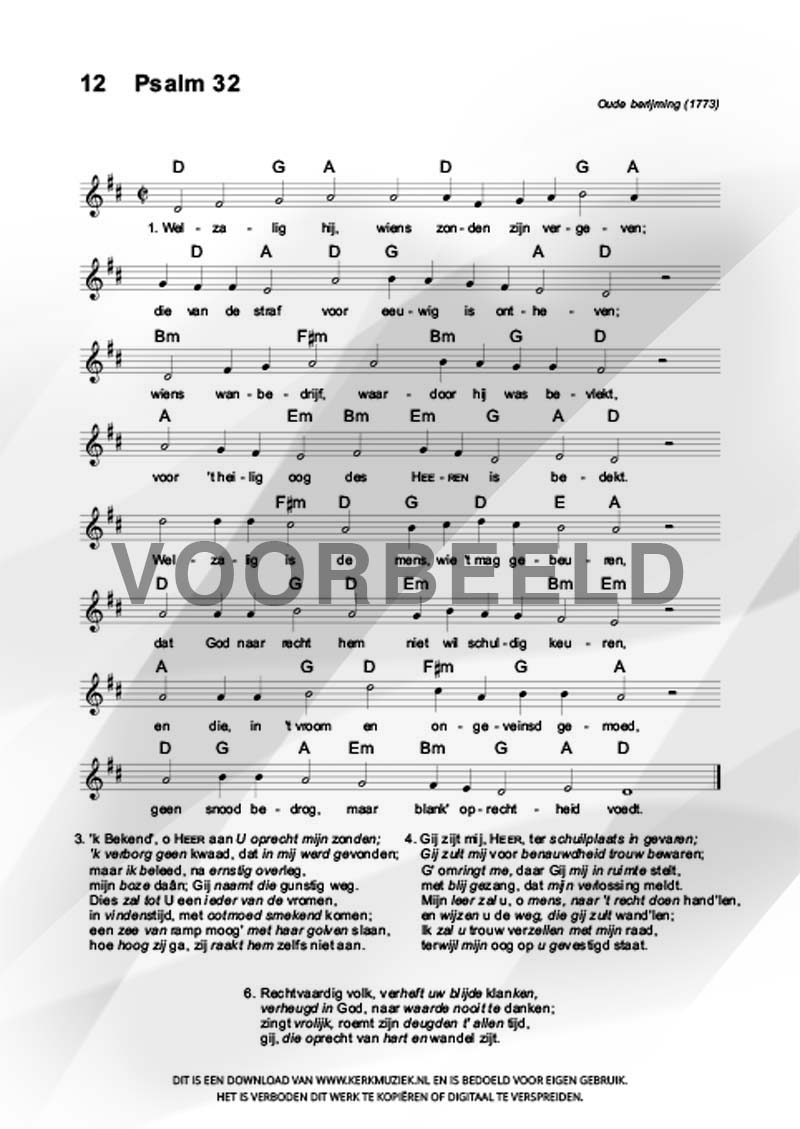 | Aanhef (eerste regel) | Welzalig hij, wiens zonden zijn vergeven |