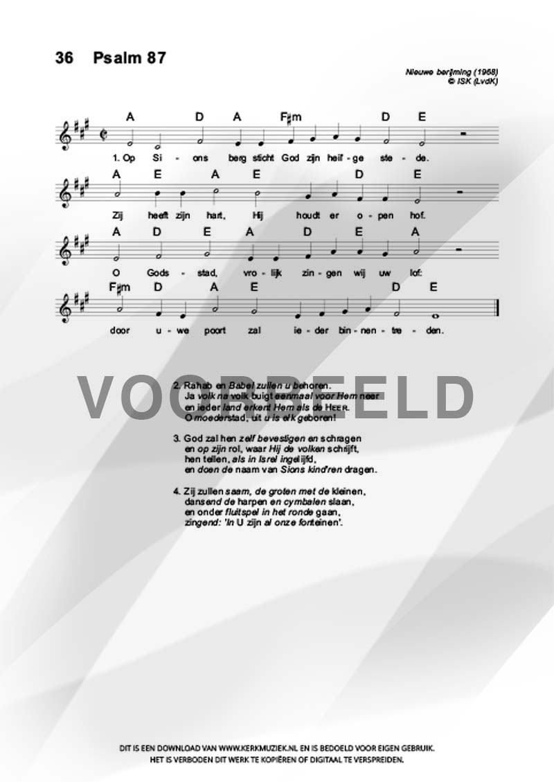 LET OP: U dient ZELF de liedbestanden te downloaden en af te drukken. Wij sturen u dus géén bladmuziek per post toe! U kunt na een geslaagde betaling direct zelf aan de slag.