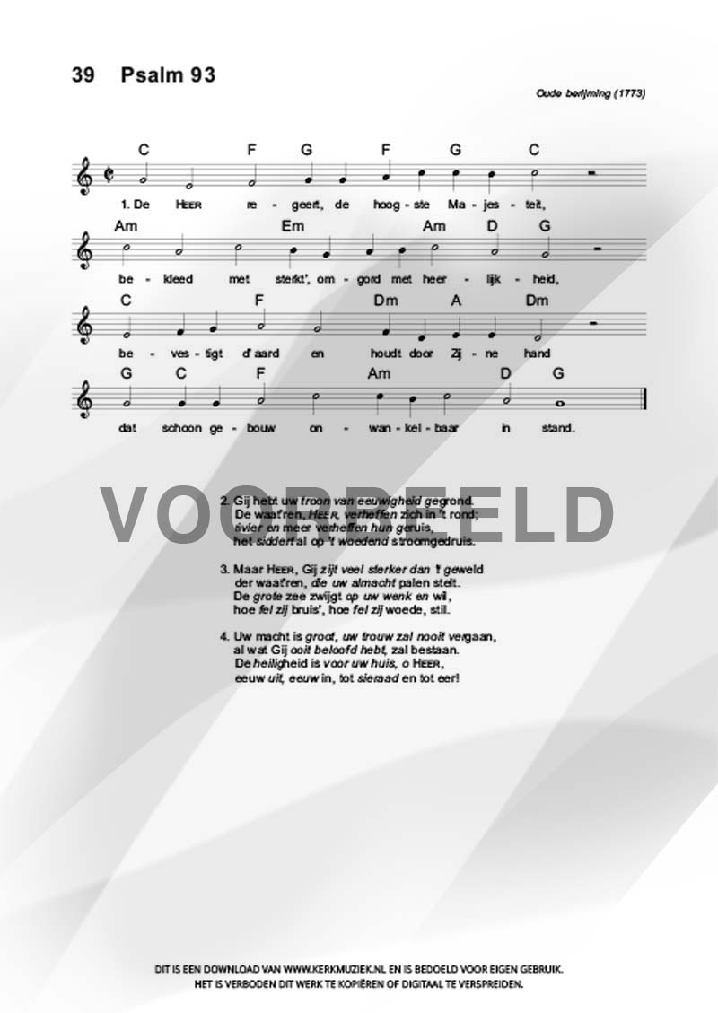| Aanhef (eerste regel) | De Heer regeert |