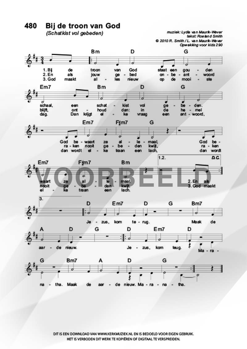 | Aanhef (eerste regel) | Bij de troon van God |