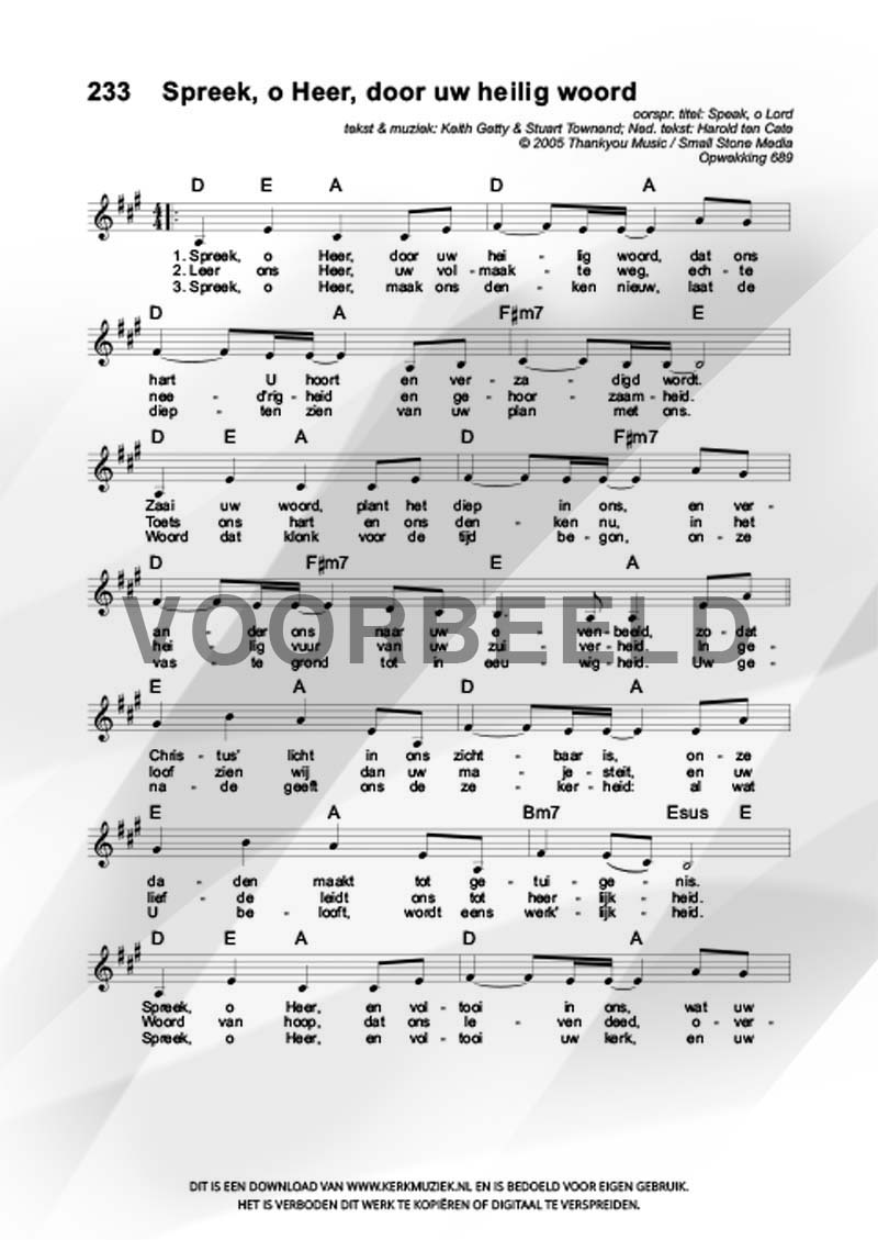 | Aanhef (eerste regel) | Spreek, o Heer, door uw heilig Woord |