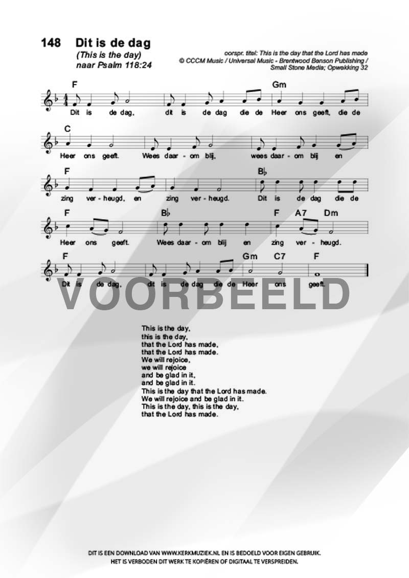 | Aanhef (eerste regel) | Dit is de dag |