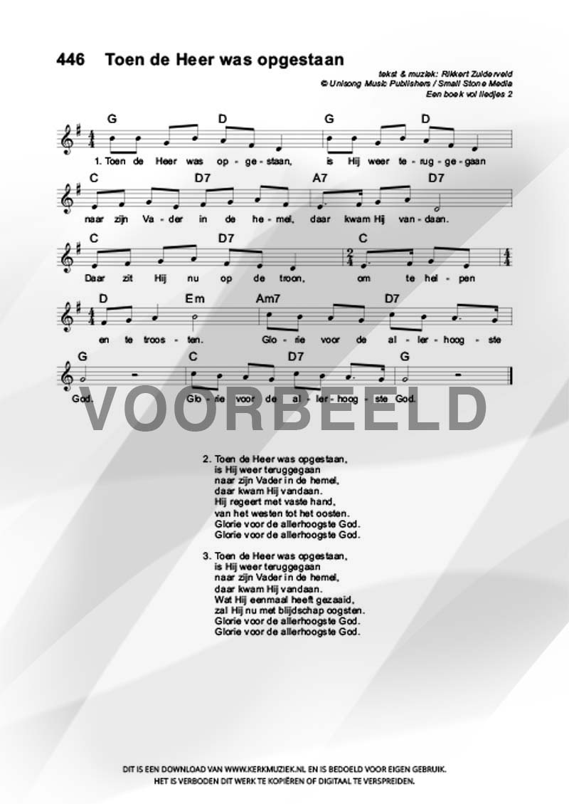 LET OP: U dient ZELF de liedbestanden te downloaden en af te drukken. Wij sturen u dus géén bladmuziek per post toe! U kunt na een geslaagde betaling direct zelf aan de slag.
