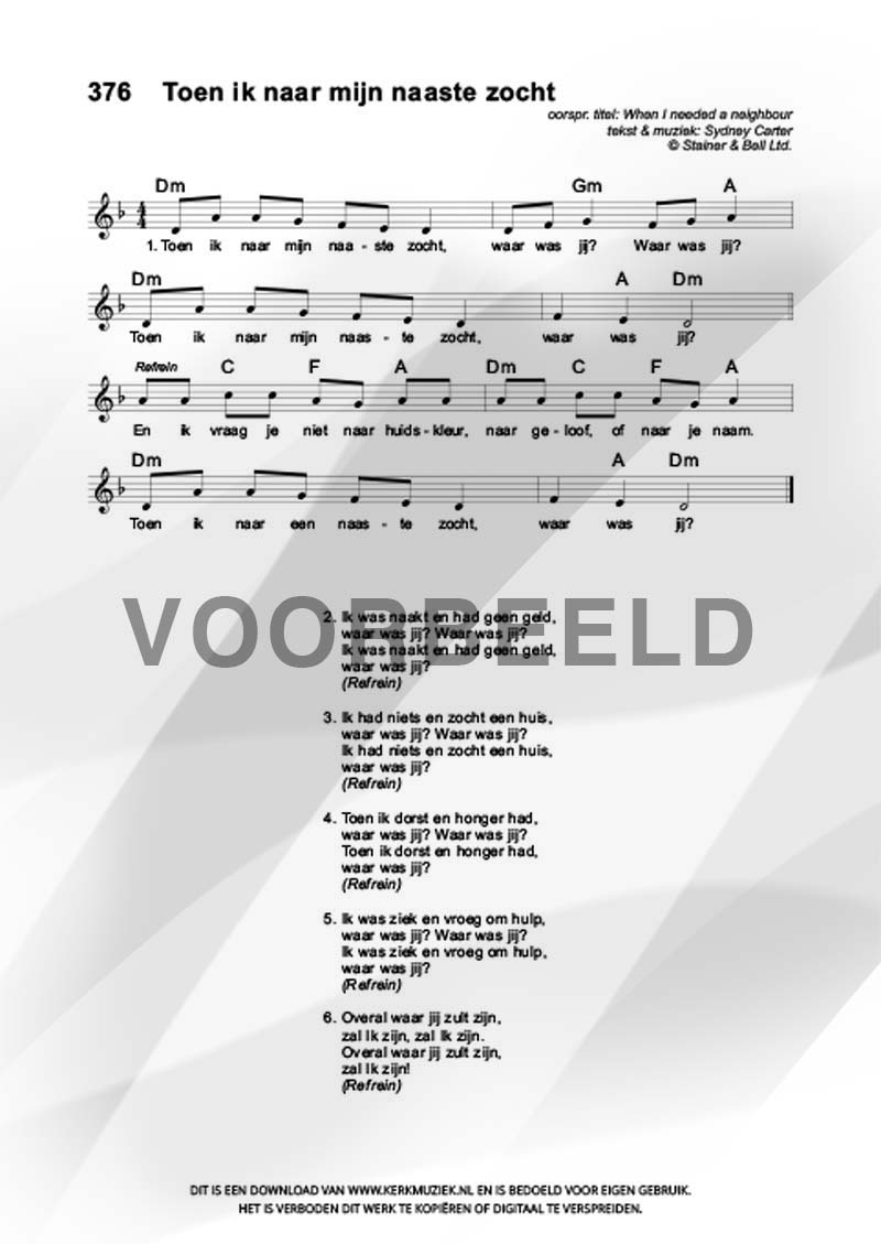 | Aanhef (eerste regel) | Toen ik naar mijn naaste zocht |