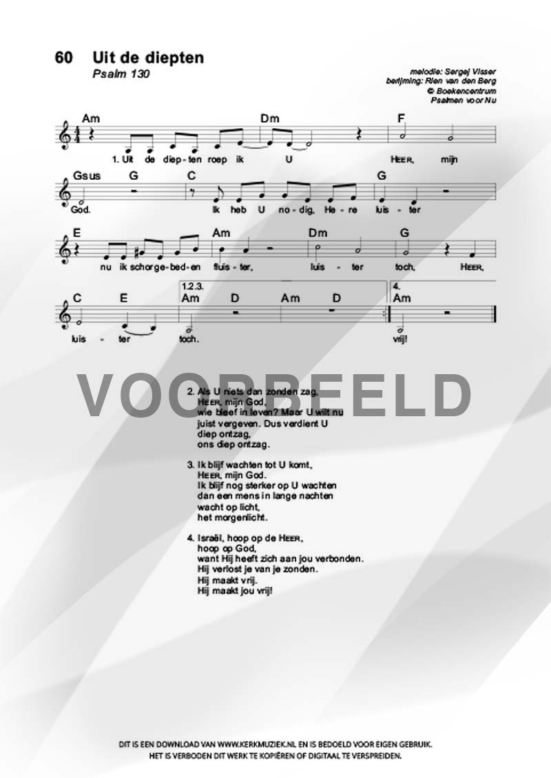 | Aanhef (eerste regel) | Uit de diepten roep ik U |