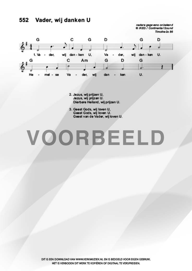 | Aanhef (eerste regel) | Vader, wij danken U |