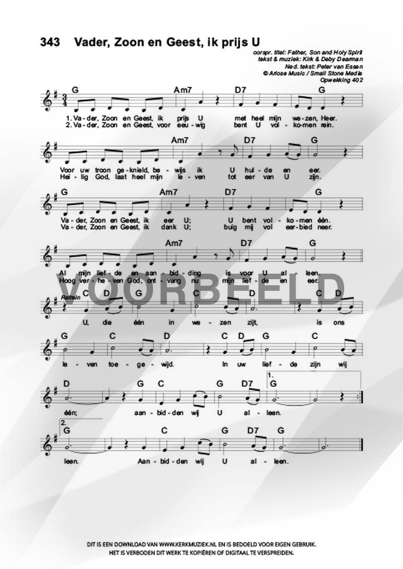 | Aanhef (eerste regel) | Vader, Zoon en Geest, ik prijs U |
