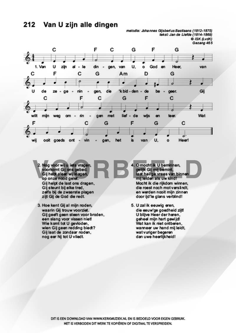 | Aanhef (eerste regel) | Van U zijn alle dingen |