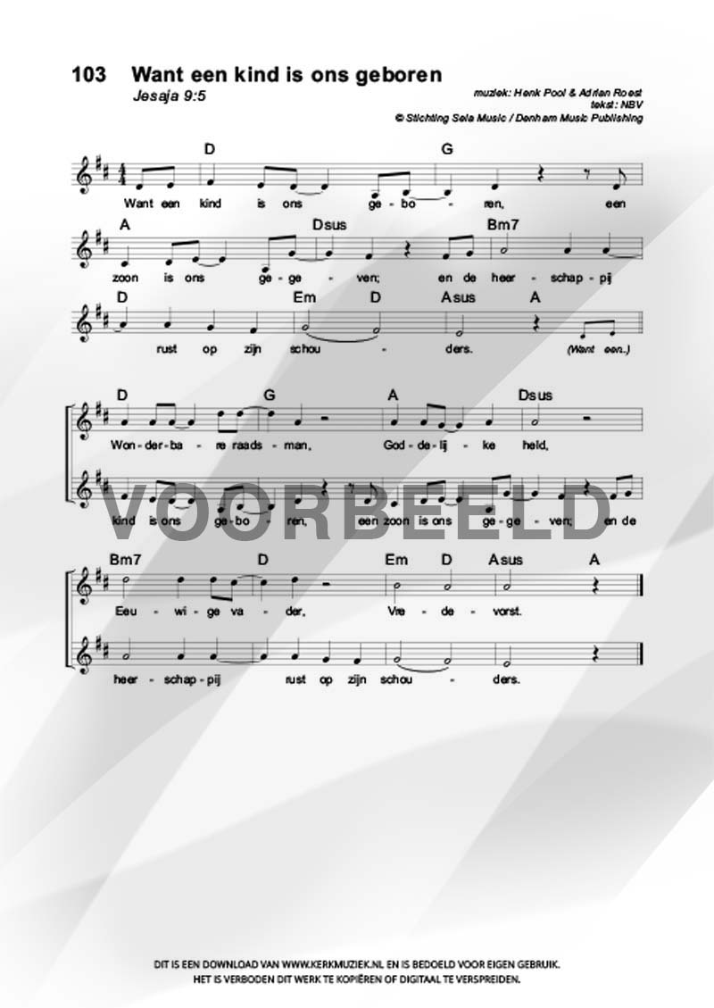 | Aanhef (eerste regel) | Want een kind is ons geboren |