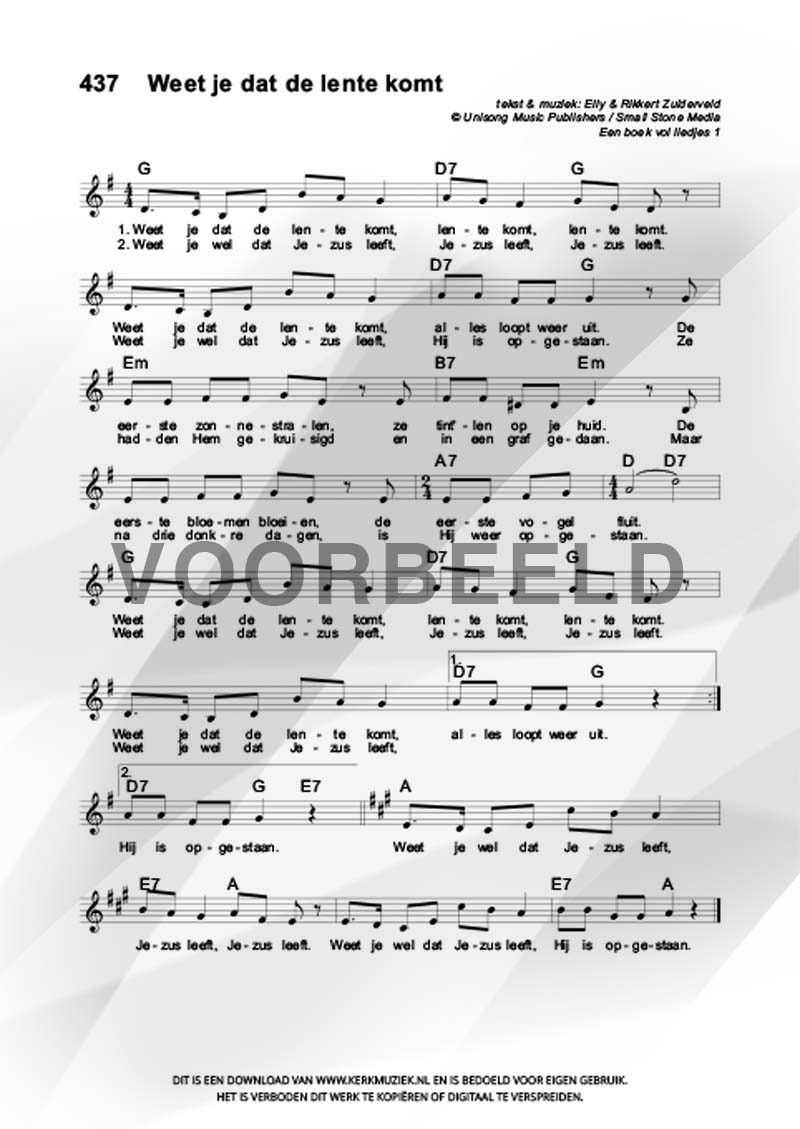 | Aanhef (eerste regel) | Weet je dat de lente komt |