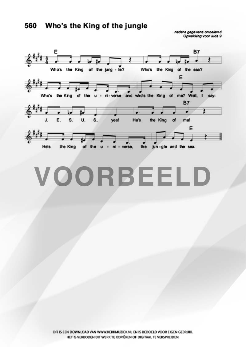 | Aanhef (eerste regel) | Who's the King of the jungle |