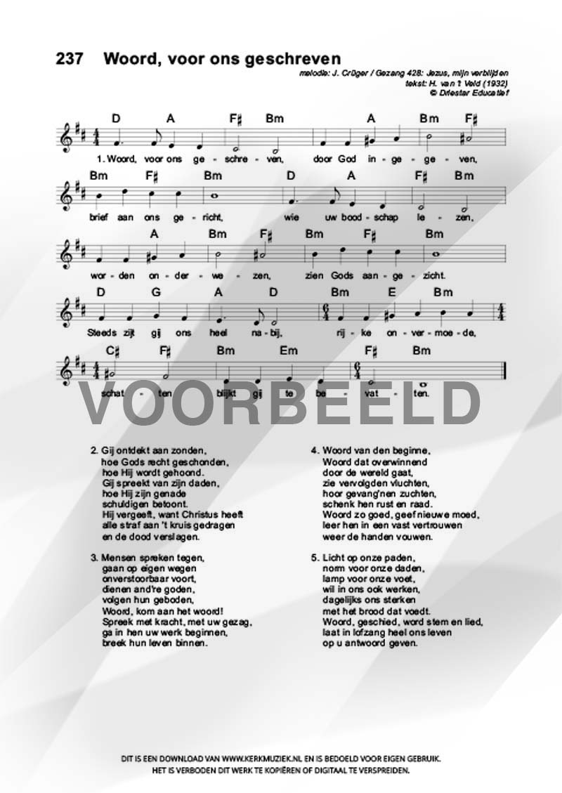 | Aanhef (eerste regel) | Woord voor ons geschreven |