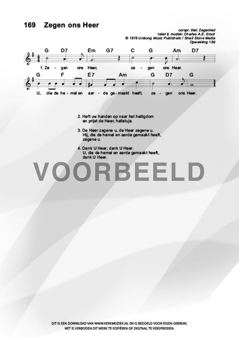 | Aanhef (eerste regel) | Zegen ons Heer |