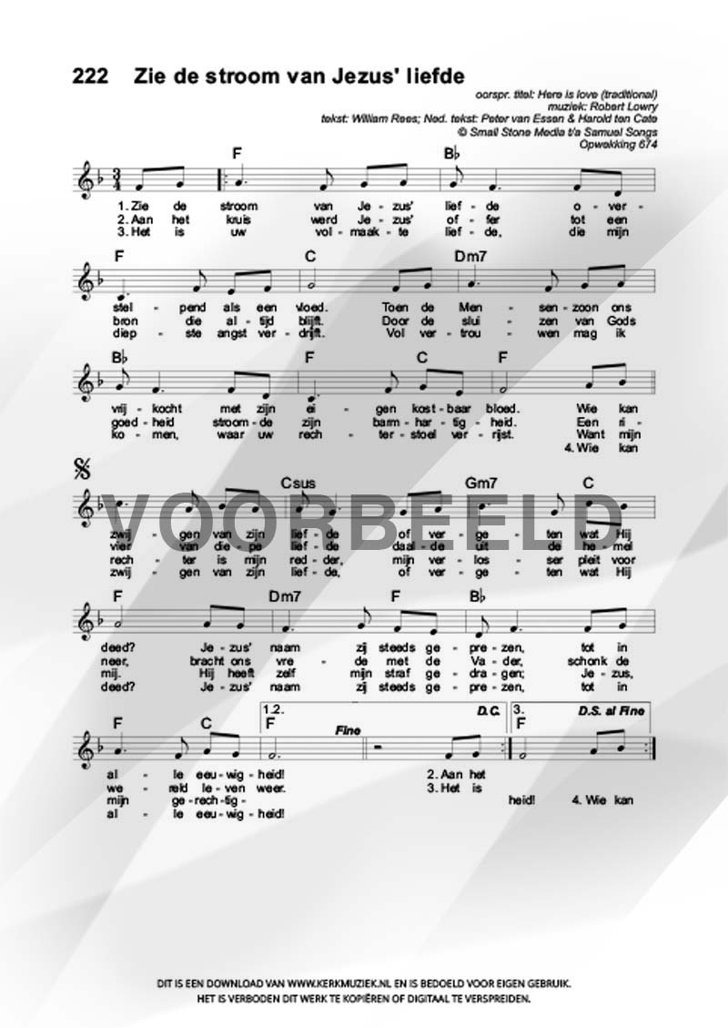 | Aanhef (eerste regel) | Zie de stroom van Jezus' liefde |